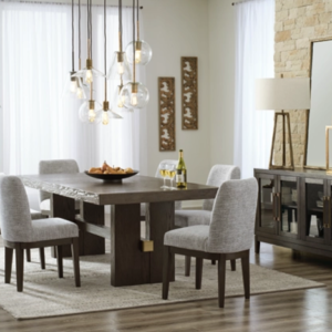 Material Wood, Fabric Measurements Dining Table Assembled : 41.75″ W x 108″ D x 36.25″ H Side Chair Assembled : 20.5″ W x 24.25″ D x 42″ H SKU Numbers Brown Color Dining Table Set D773-32/124
